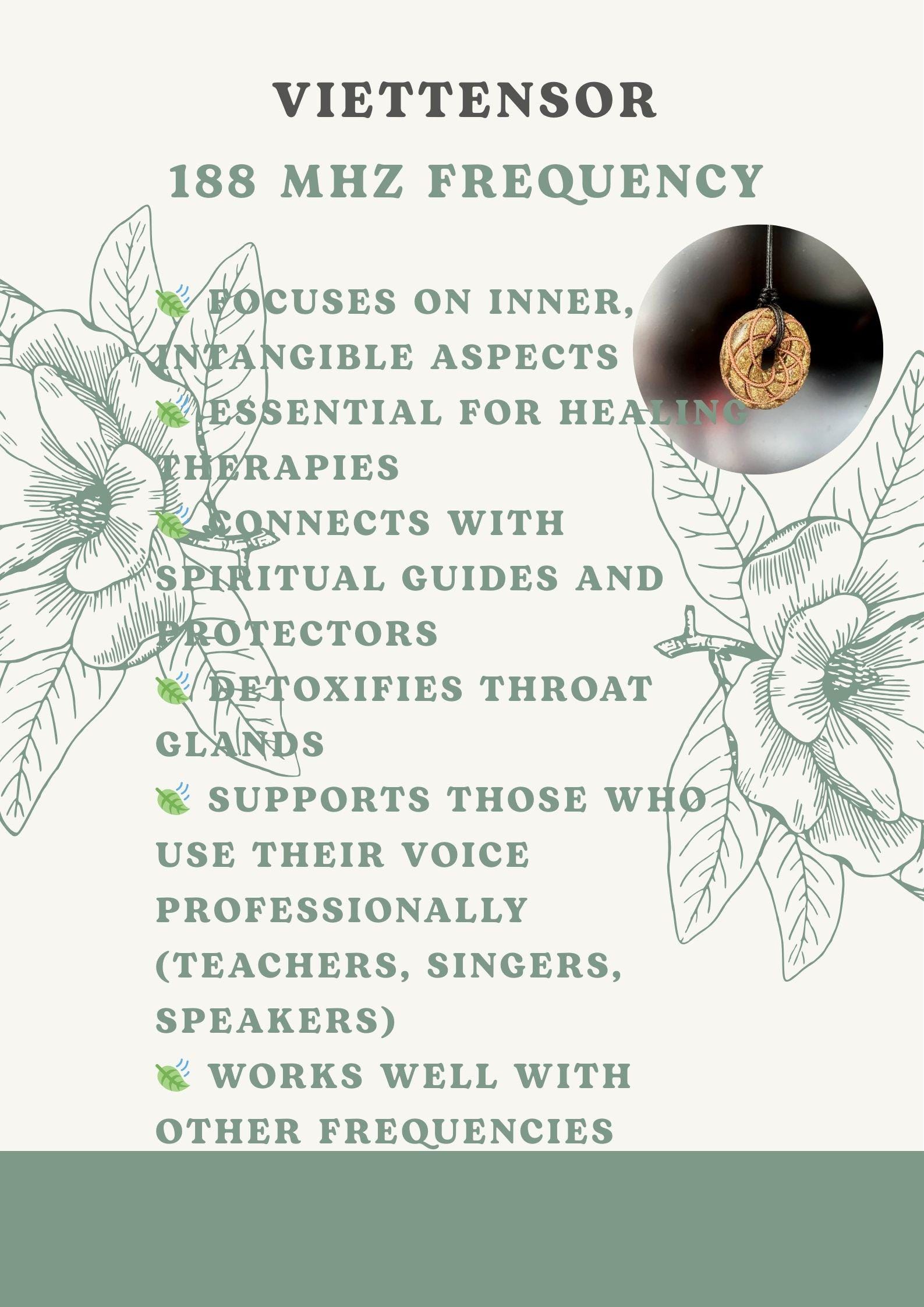 🔹188 MHz: Enhances spiritual connection, intuition, and vocal energy. Works with Third & Sixth Chakras.