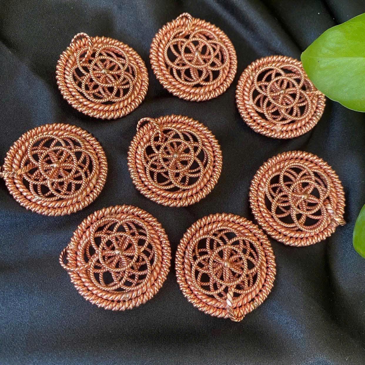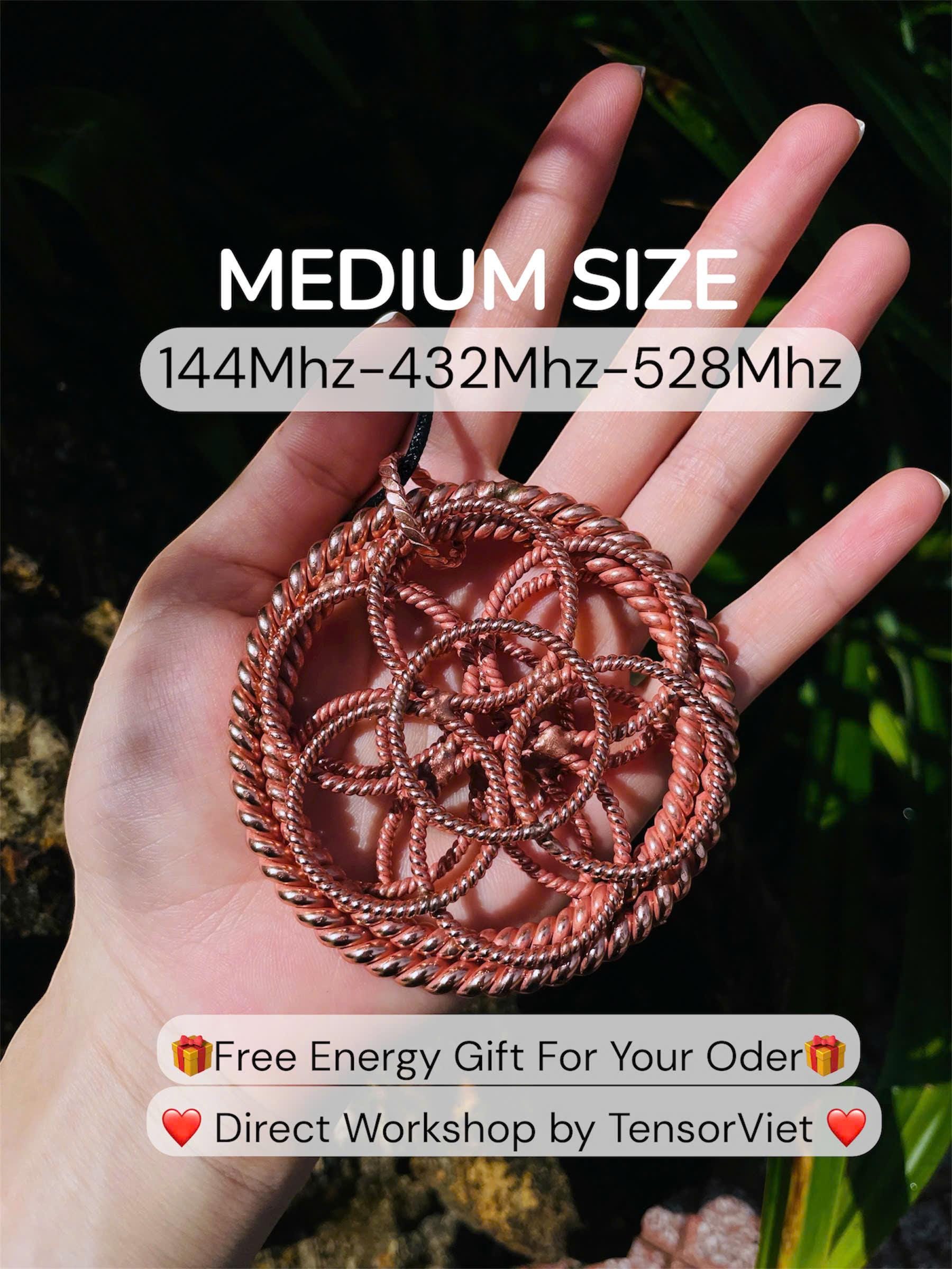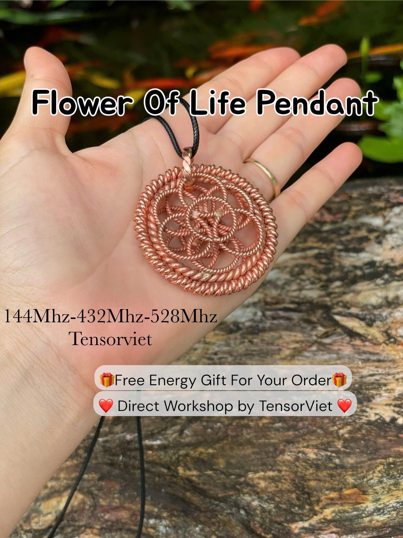 Elevate your energy, align your spirit, and reconnect with the natural rhythms of the universe with this powerful handcrafted Flower of Life Pendant, meticulously made from 99.99% pure red copper and tuned to three high-vibration Solfeggio frequencies: 528 MHz, 432 MHz, and 144 MHz.