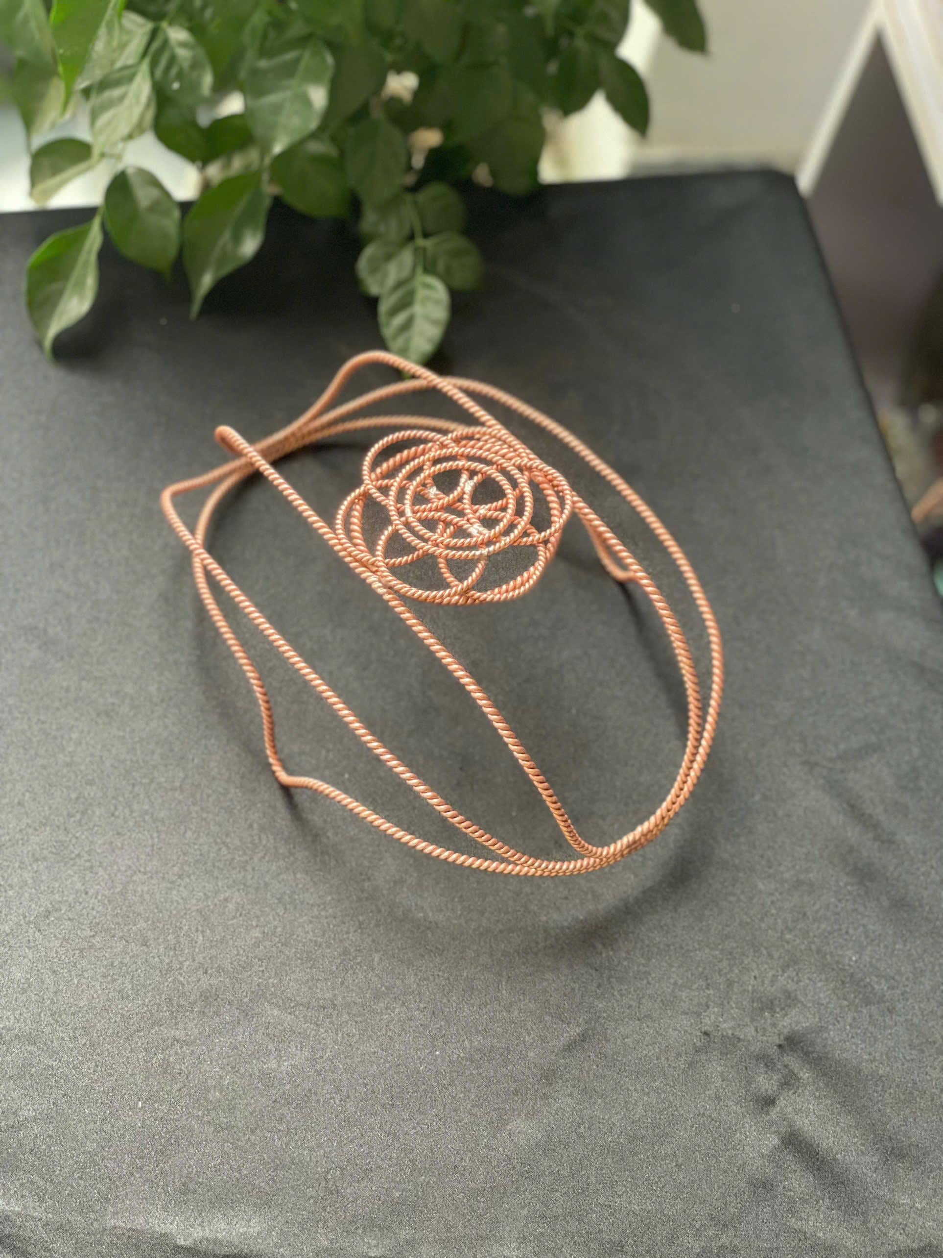 Introducing the Handmade Tensor Hat, a one-of-a-kind energy accessory crafted with care and purpose. Woven entirely from pure red copper, this wearable sacred geometry piece combines wellness, protection, and style into one beautifully functional design.