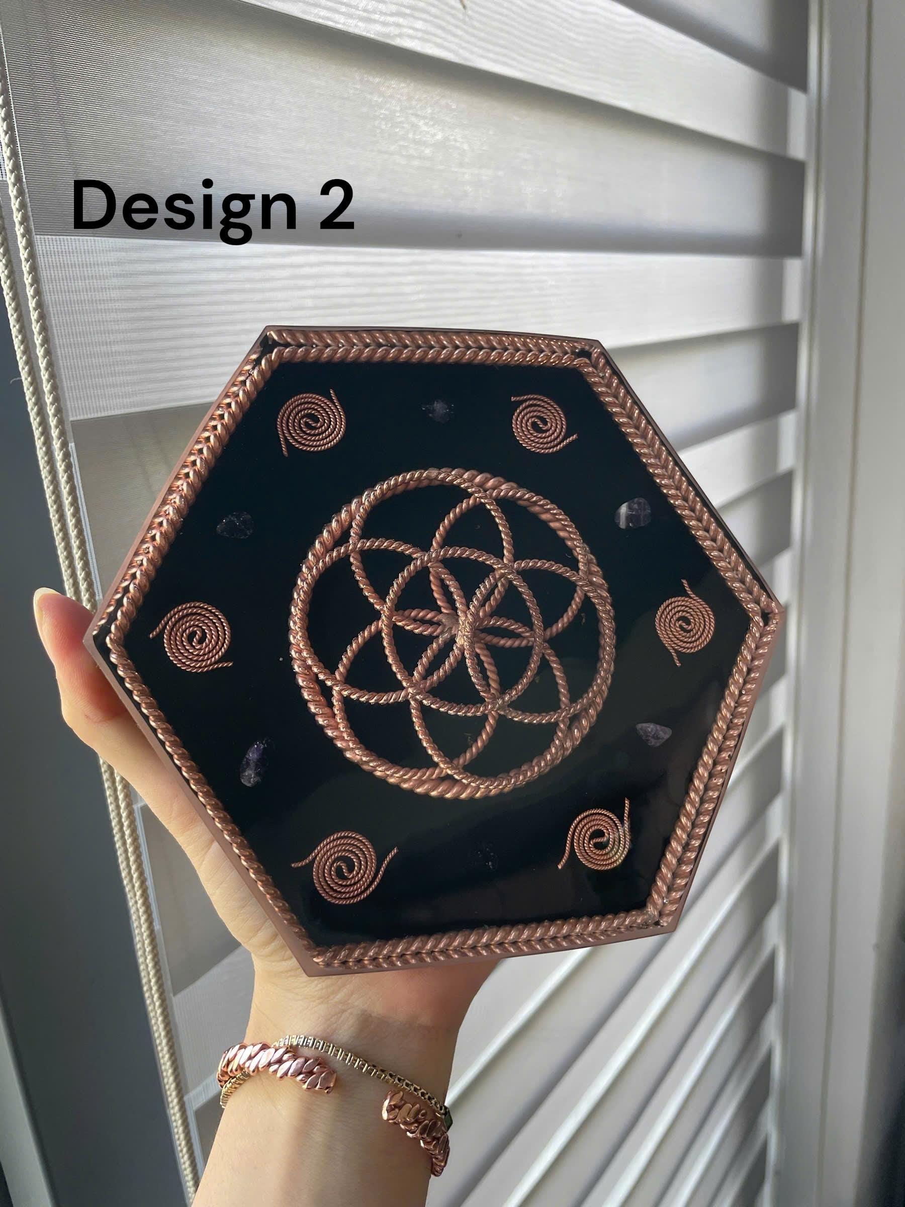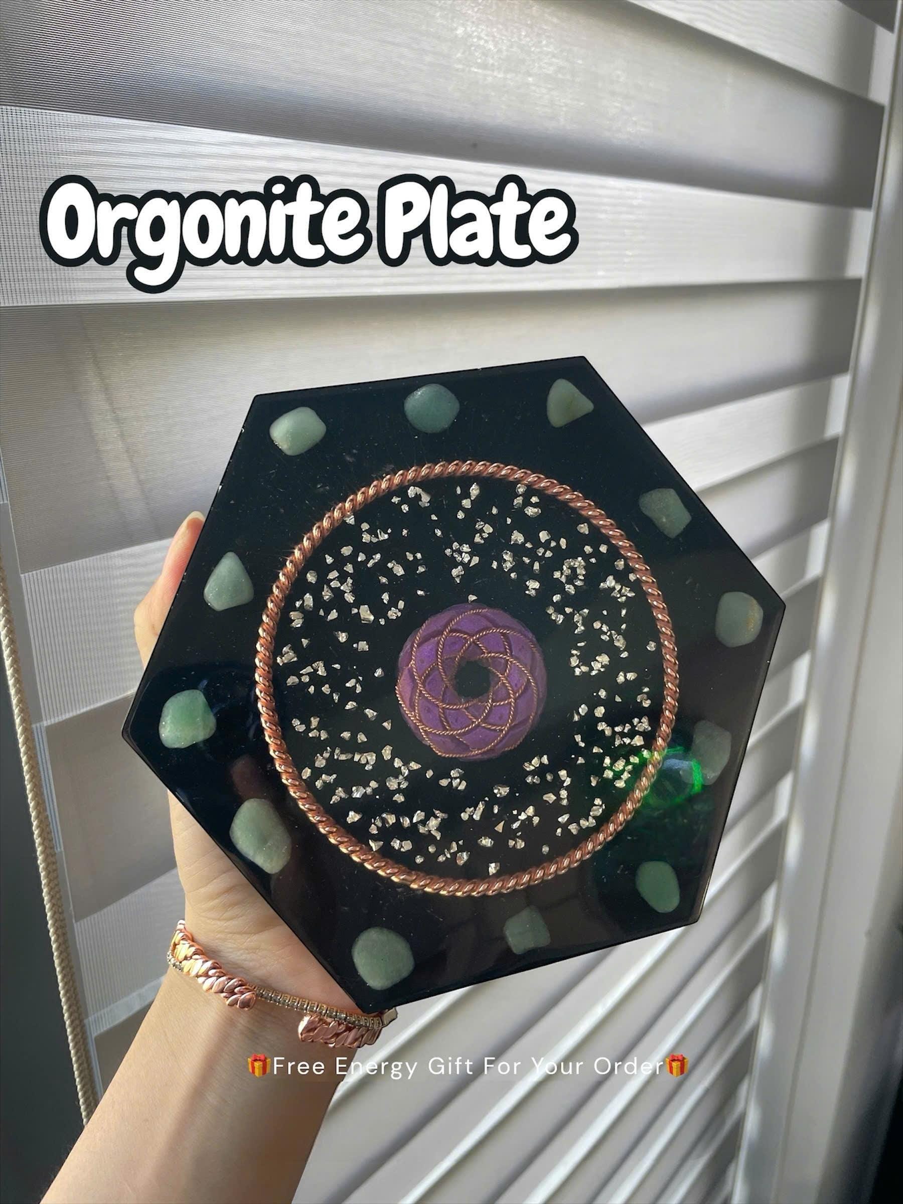 This handcrafted Orgonite charging plate is a powerful energy harmonizer, combining sacred geometry and natural crystals to support energetic balance and spiritual alignment.