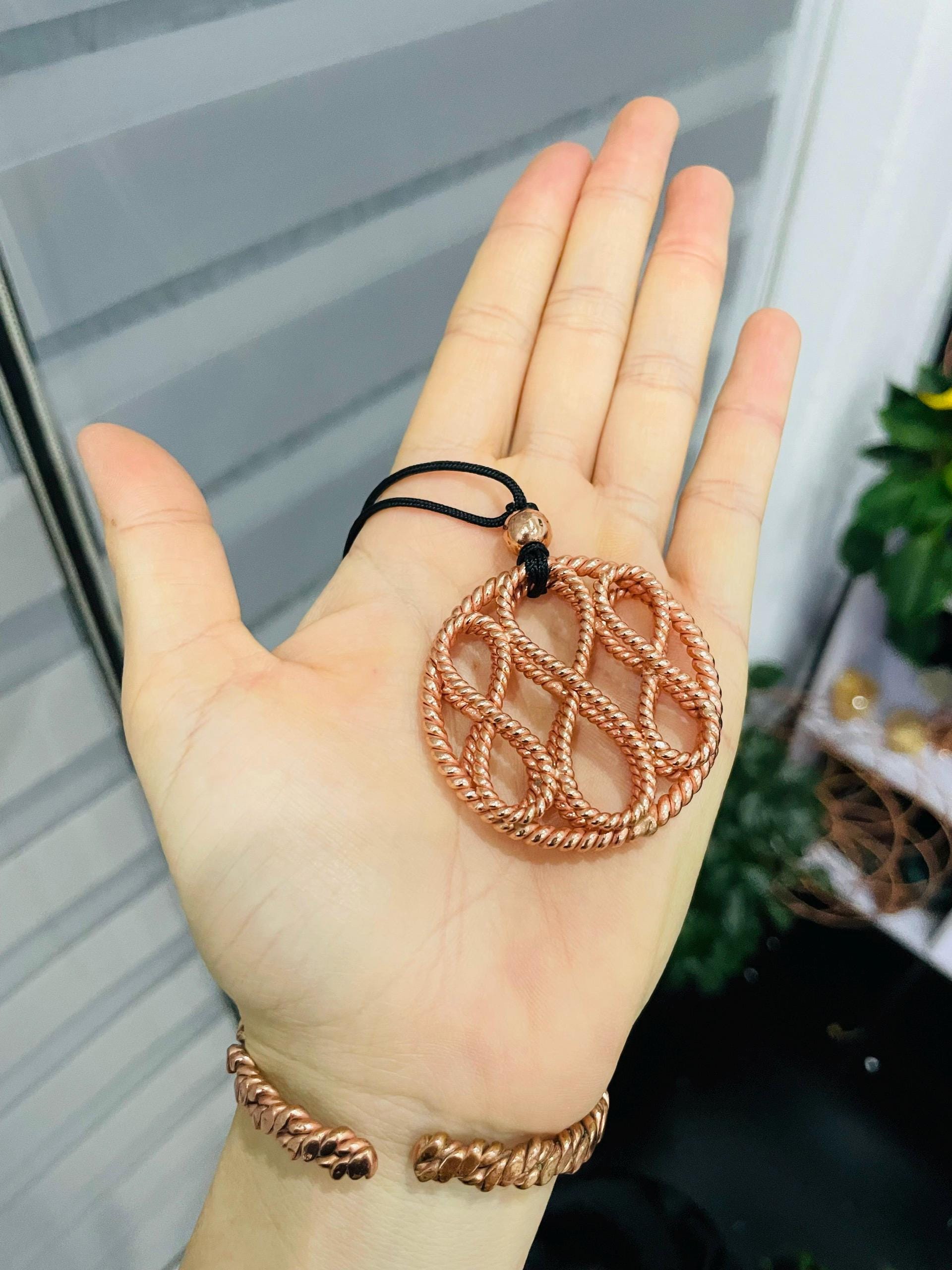 This handcrafted pendant features the timeless infinity symbol formed by twisted pure copper and silver wires, creating a beautiful blend of grounding and high-vibration energies. Designed with dual-frequency sides, it emits three powerful healing vibrations: 144 MHz, 177 MHz, and 188 MHz, supporting spiritual connection, emotional balance, and physical well-being.