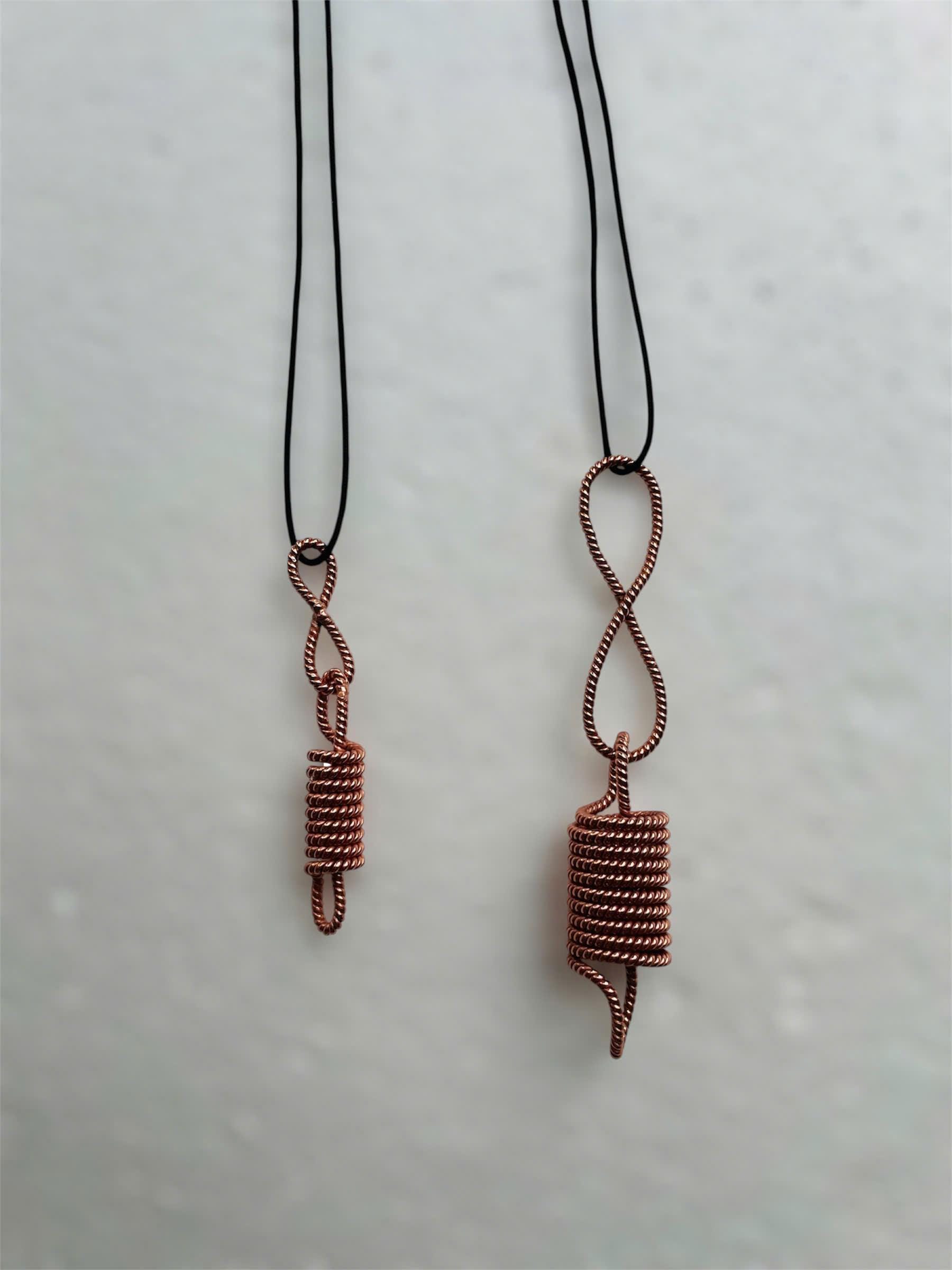 Handcrafted from 99.99% pure red copper, this pendant pairs the flowing Infinity loop with an Acu-Vac spiral to symbolize breath, clarity, and continuous energy. The timeless coil form is loved by speakers, singers, teachers, and communicators who want a piece that feels both subtle and powerful.