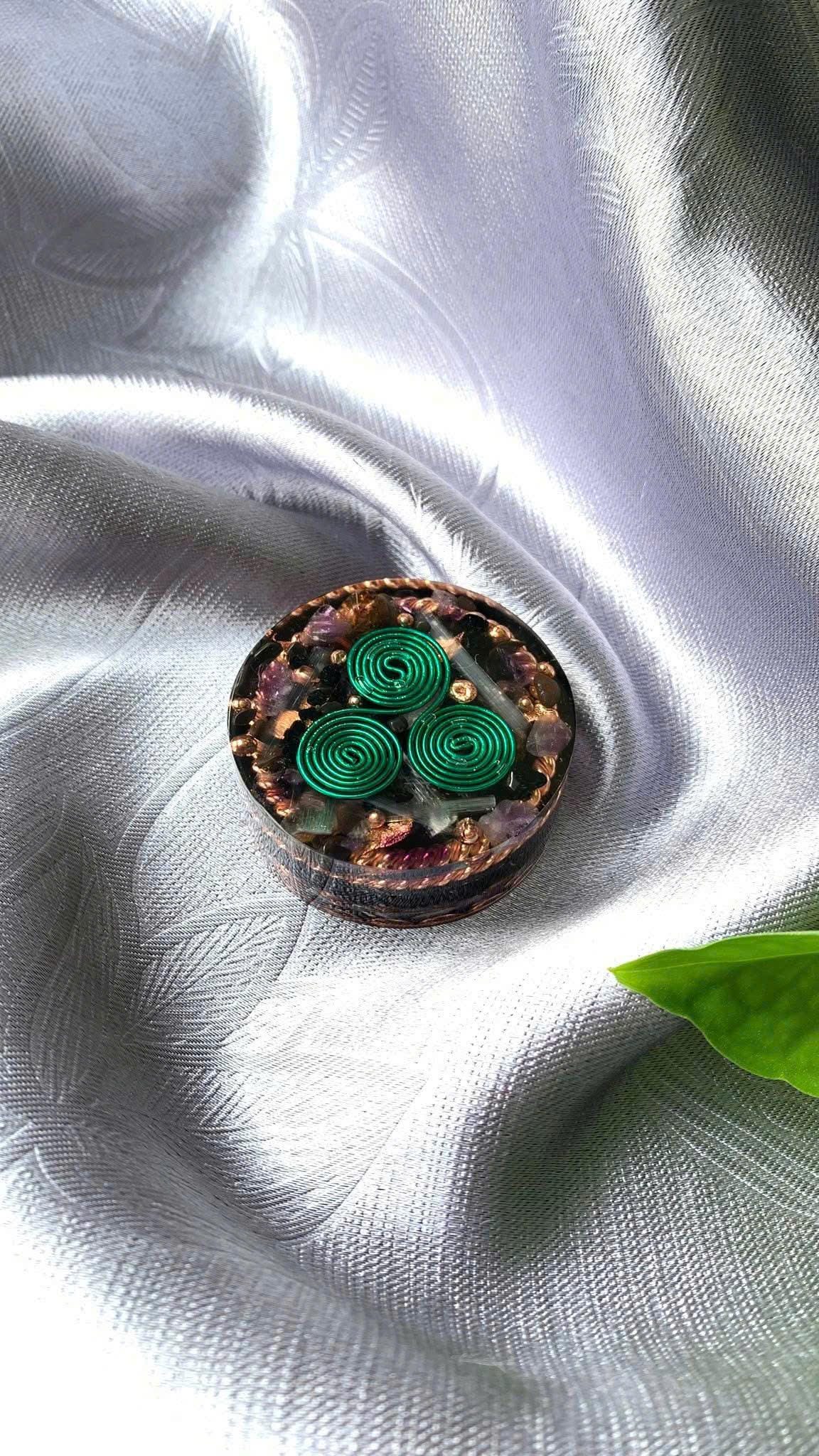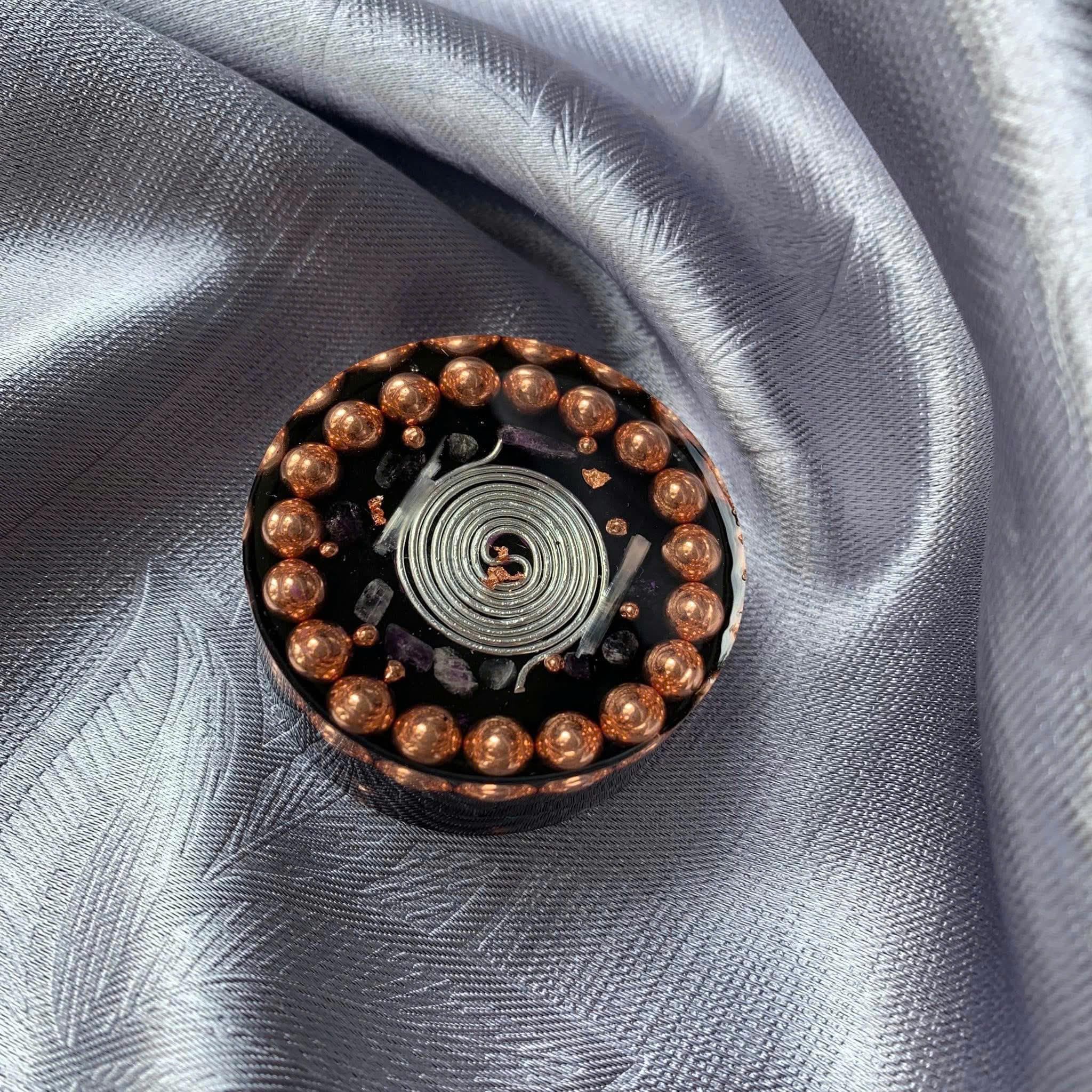 Carry your personal EMF protection and positive energy everywhere with this round Pocket Orgonite.
