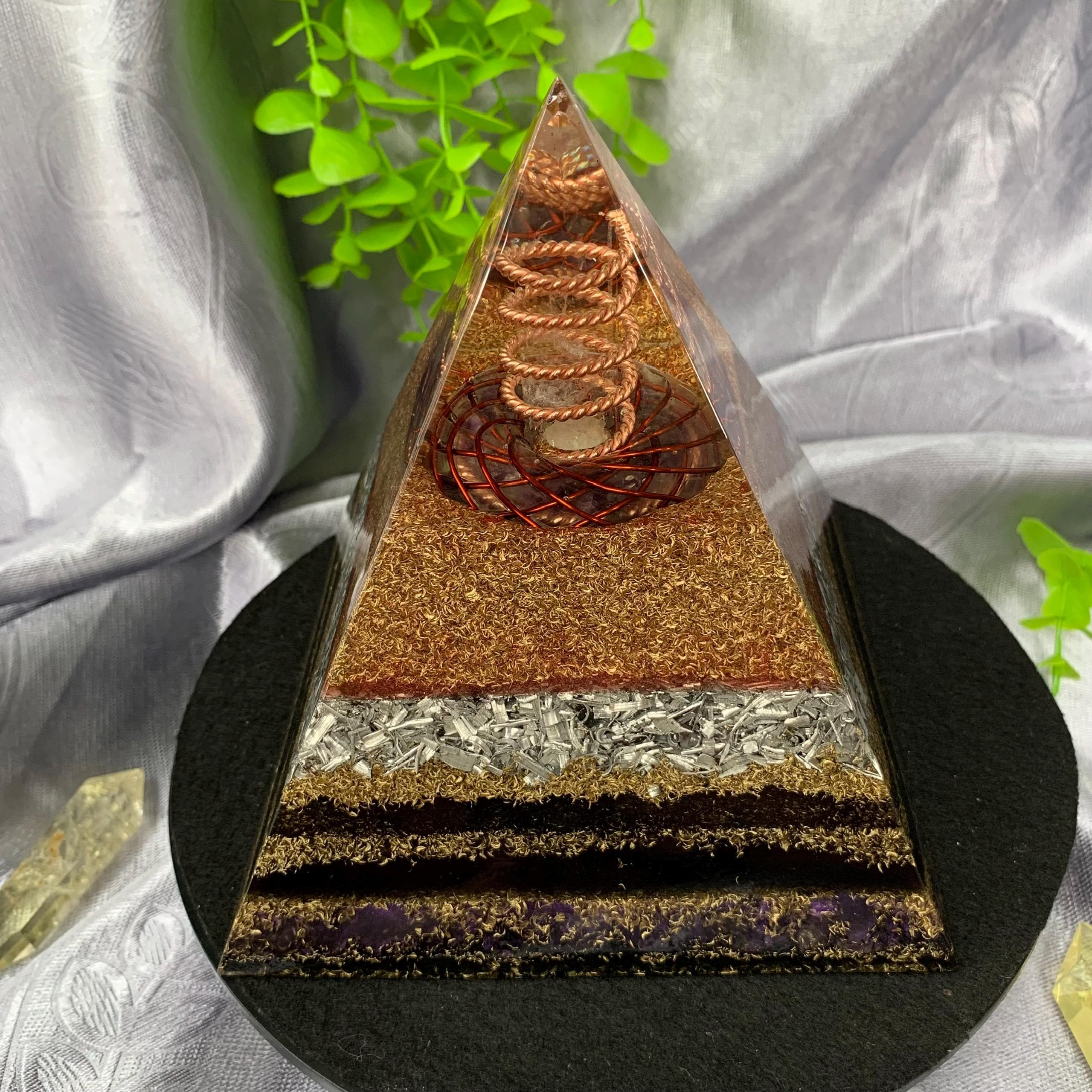 🌿Natural Quartz Pillar: Acts as a powerful energy amplifier and conductor, enhancing the pyramid’s energy output, purifying surrounding energies, supporting spiritual growth, and aiding meditation and manifestation practices.