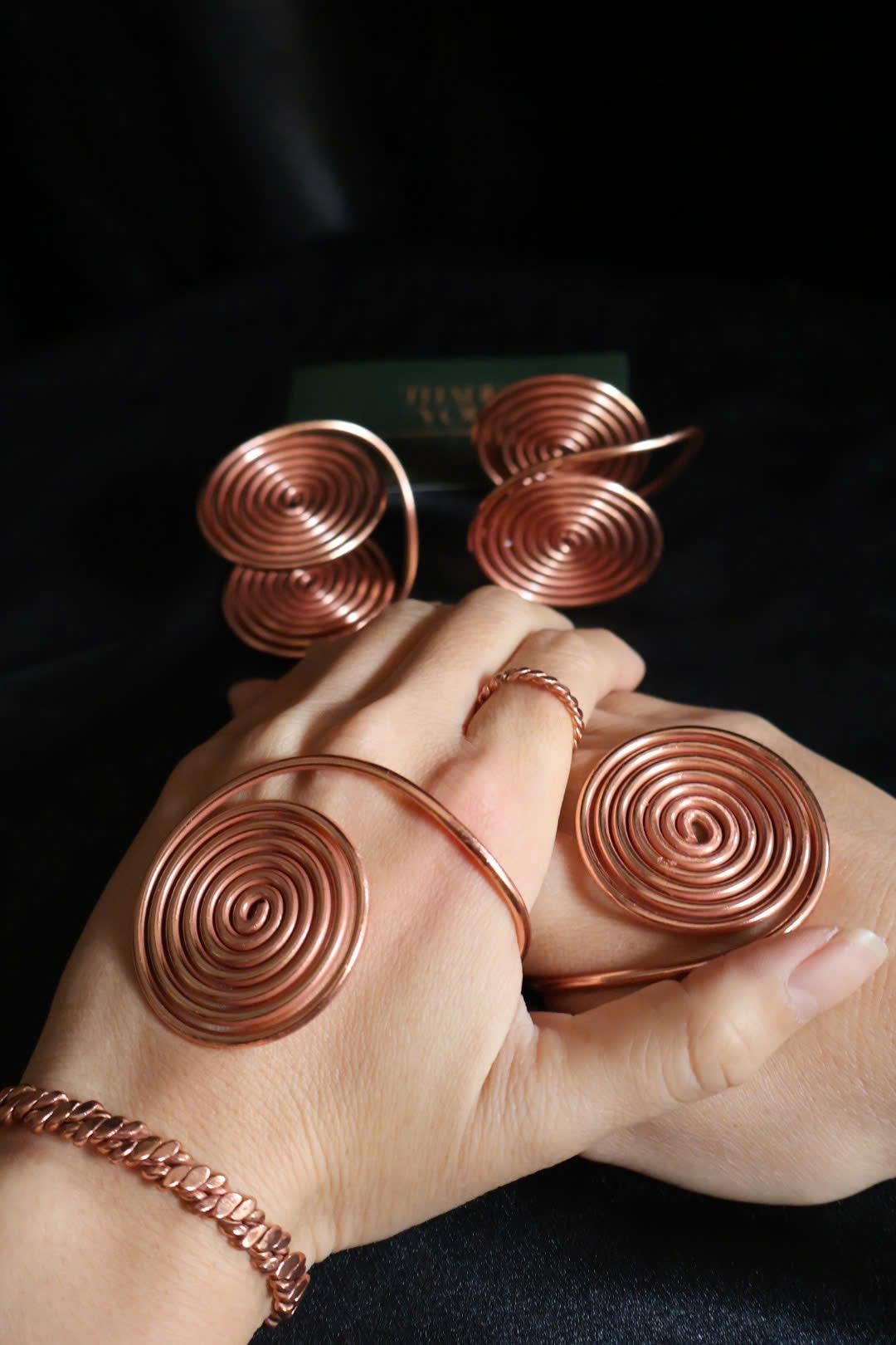 Experience holistic energetic care with the Copper Energy Spiral — a handcrafted hand ring designed to protect, amplify, and harmonize your energy, while helping you reconnect with yourself at the end of the day.