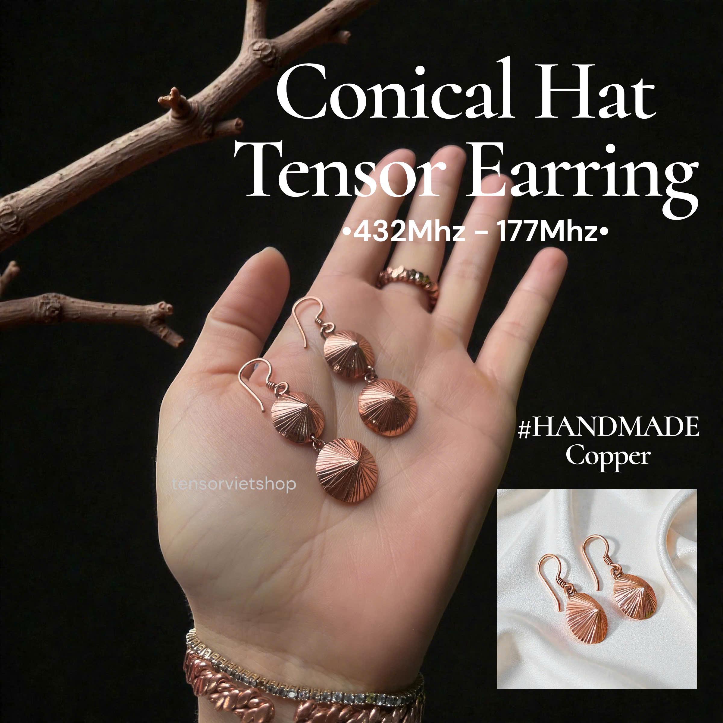 Vietnamese Conical Leaf Hat Earrings — Copper/Silver Tensor Energy Jewelry — 177Mhz, 432Mhz