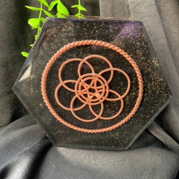 Powerful Orgonite Plate - Sacred Tesla Torus 369 Design - Flower Of Life Symbol - Tensor Rings