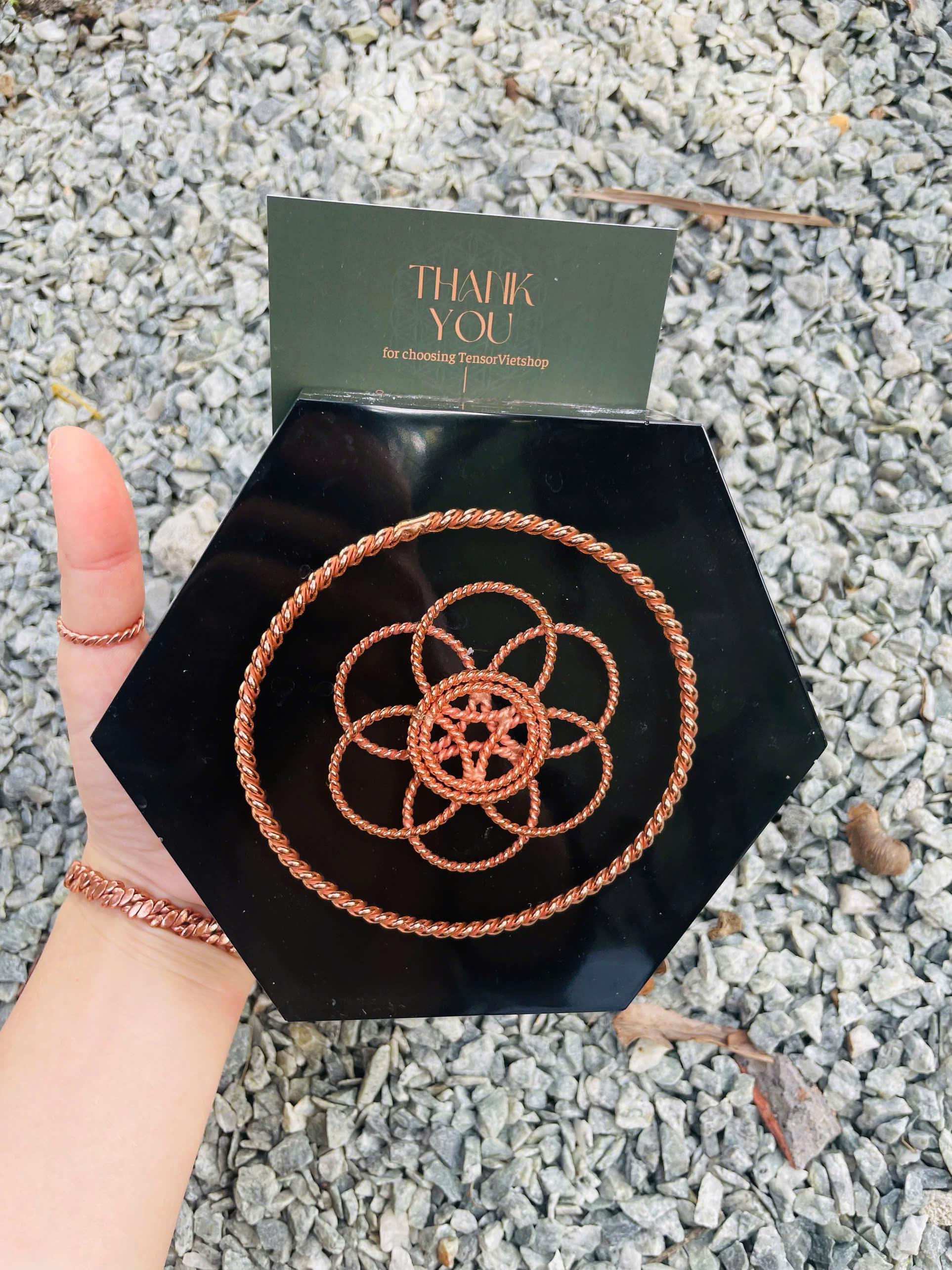 Integrated with a copper Rodin Coil (based on Tesla 369 and torus geometry) and the Flower of Life symbol, this orgonite amplifies energy flow, creates a harmonious torus field, and supports vitality, protection, and spiritual alignment.