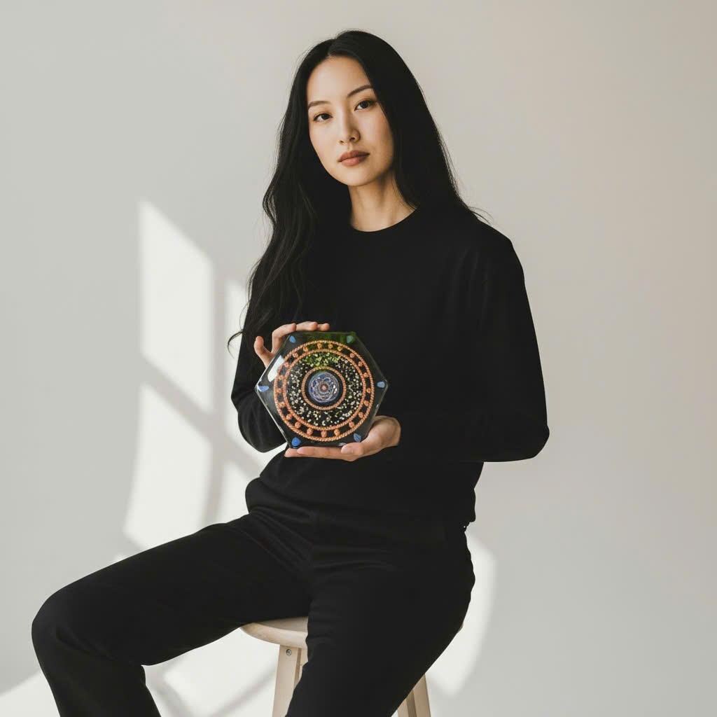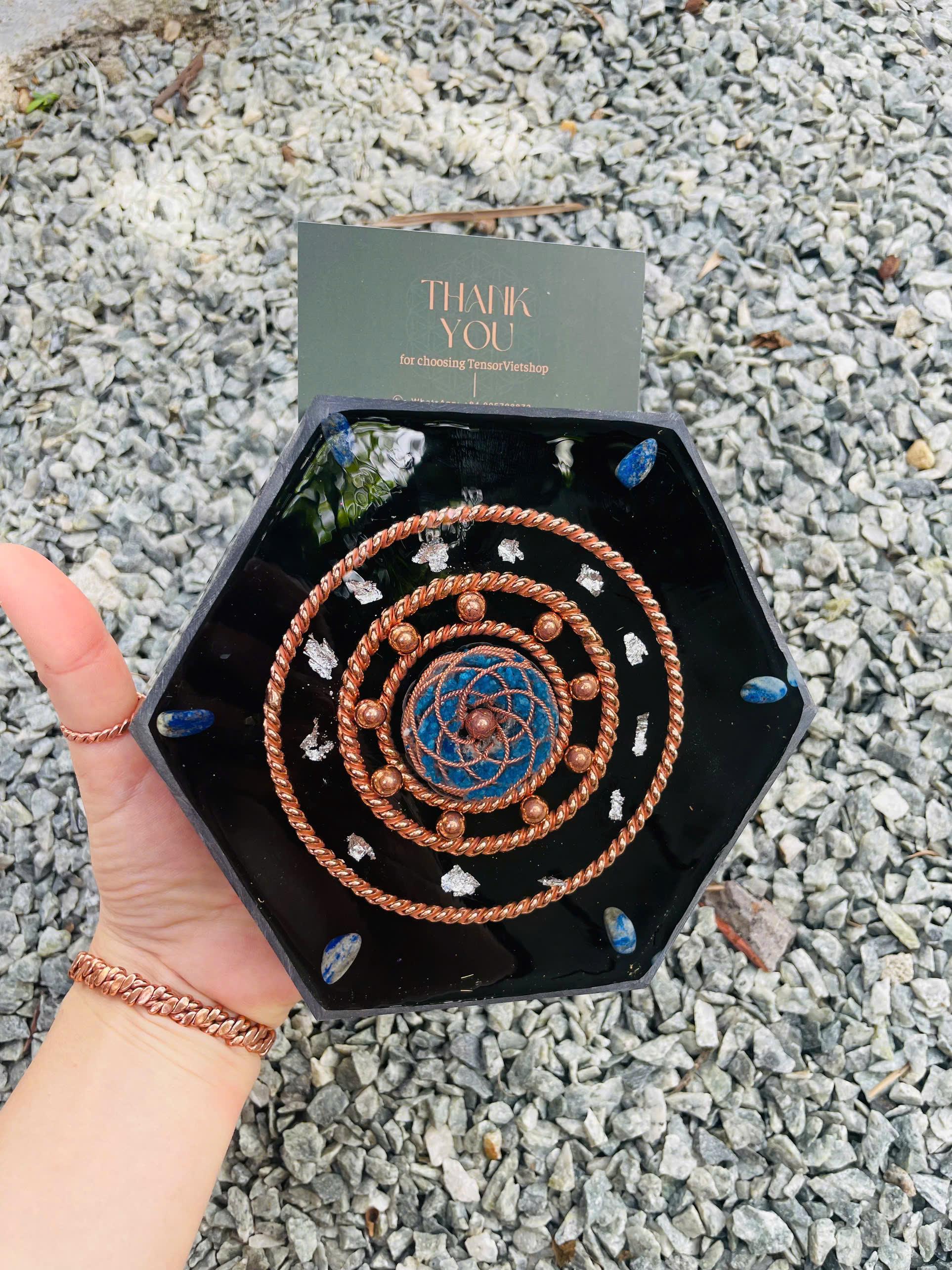 This handcrafted Orgonite charging plate is a powerful energy harmonizer, combining sacred geometry and natural crystals to support energetic balance and spiritual alignment.